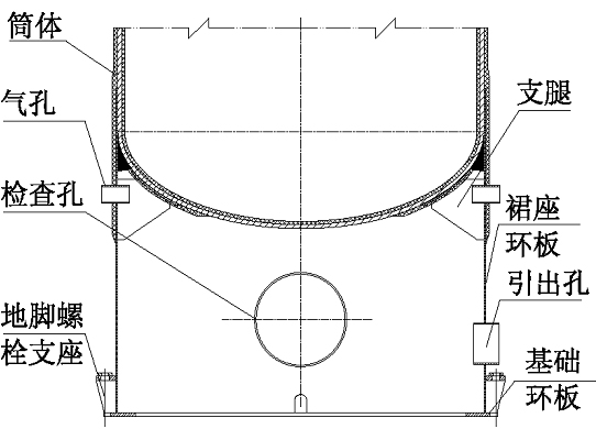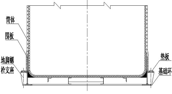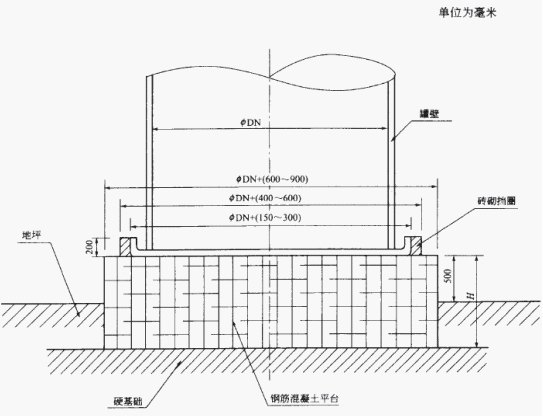 3.1)按制造厂提供的基础图制作容器时,要求基础上必须有一圈砖砌的挡圈,用于制作容器的平底封头。
