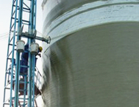 4)操作要仔细,以防工具、脚手架或其他物体撞击贮罐或掉落到贮罐上。操作者进入贮罐时应穿软底鞋。使用梯子时(内侧或外侧)凡与贮罐接触部位应加垫,以防表面刮伤或局部受载。