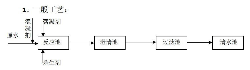 原水经水泵提升到澄清池处理,在进入澄清池前投加絮凝剂,投加絮凝剂是增加澄清效果,投加絮凝剂的具体量是根据出水浊度而定的。澄清池出水还须经过过滤器过滤后的水一般浊度都能达到5mg/l以下。经过过滤器的合格水就进入清水池保存。